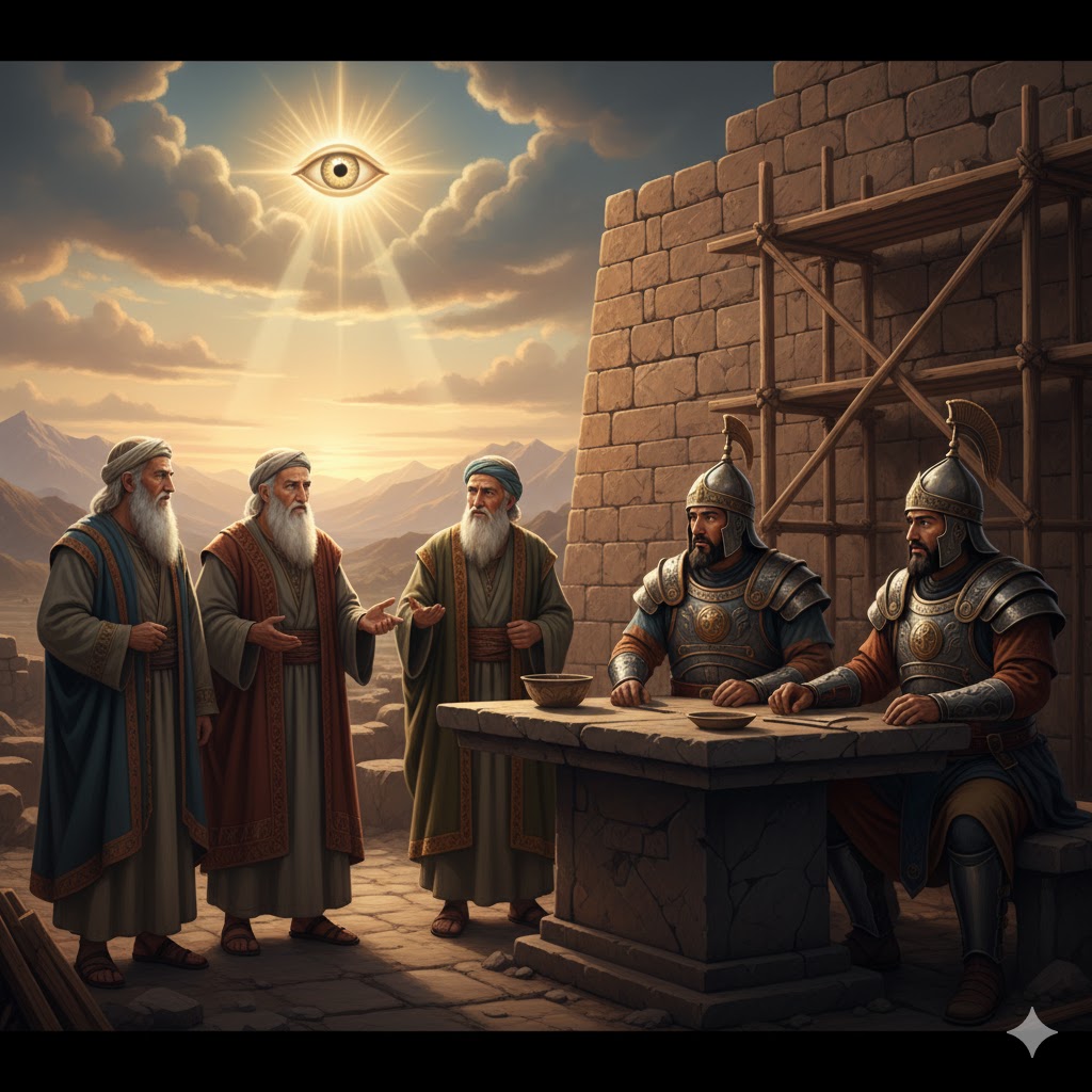 These men were “the King’s Eyes”—imperial inspectors who reported directly to the emperor. The Jews’ response was neither defensive nor rebellious. They introduced themselves as servants of “the God of heaven and earth,” confessed their forefathers’ sins that led to the exile, and testified that King Cyrus had authorized the rebuilding. Their answer was truthful, humble, and filled with conviction.